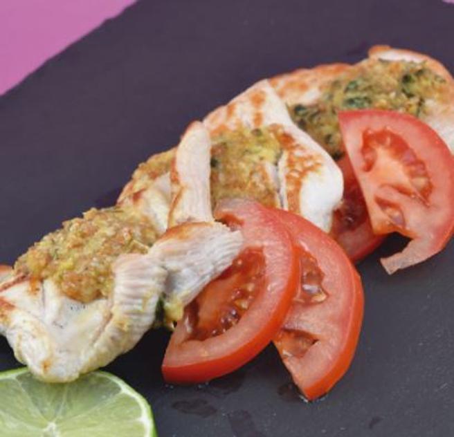 3. Cúbrelos con la gremolata y hornéalos hasta que la pechuga esté hecha por dentro y la superficie quede crujiente.